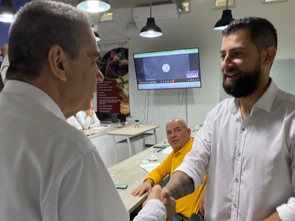 Pereira, octubre 11 de 2022. – Juan Gabriel Ramírez, campeón nacional de catación, se reunió con el director ejecutivo Jorge Humberto Echeverri Marulanda y los representantes del Comité de Cafeteros de Risaralda, donde dio a conocer los pormenores de su participación en Cafés de Colombia Expo 2022.