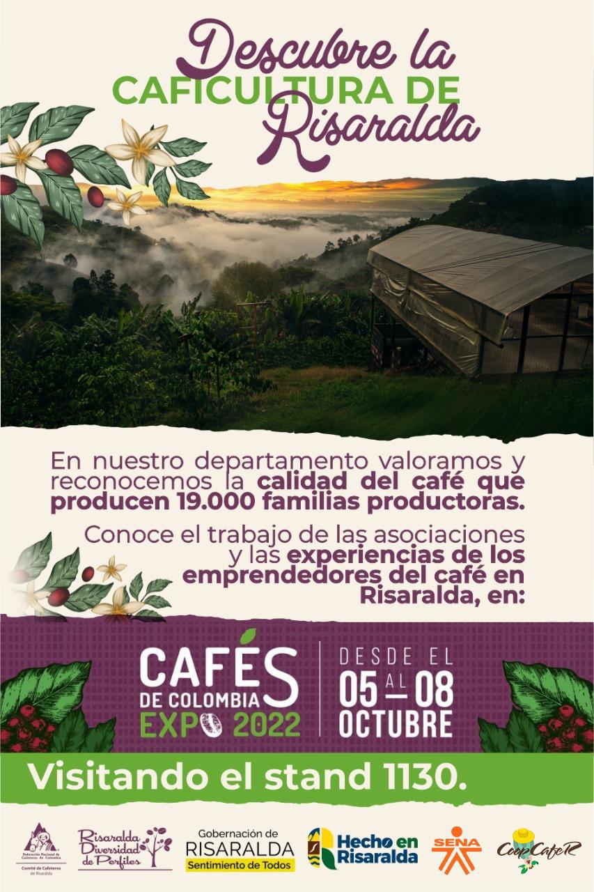Pereira, octubre 04 de 2022. – Asociaciones, emprendedores y caficultores de Risaralda, estarán del 05 al 08 de octubre participando de Cafés de Colombia Expo 2022, la feria de cafés especiales más importante de Colombia y América Latina, donde se integra toda la cadena de valor del café y ofrece un escenario para exponer y dar a conocer las tendencias e innovaciones del mercado a nivel nacional e internacional.